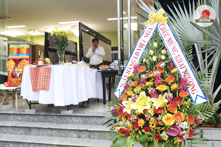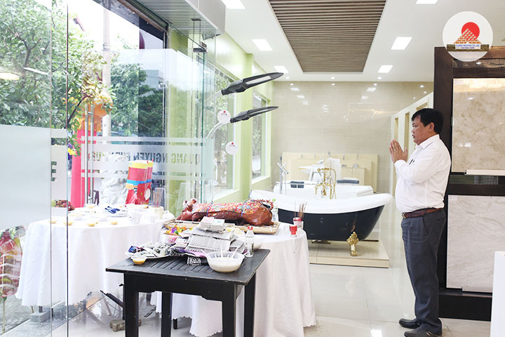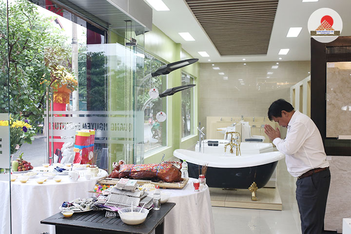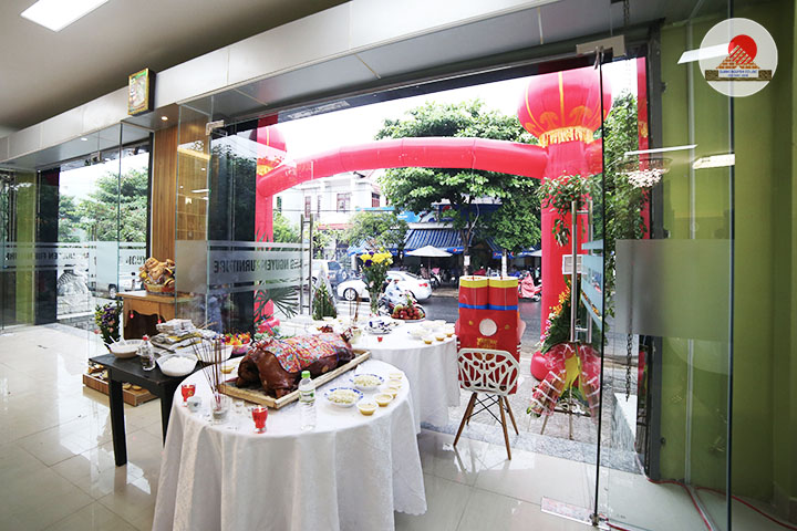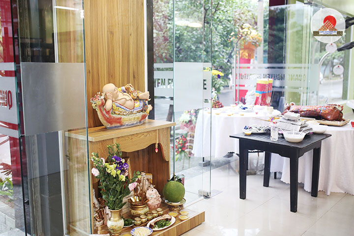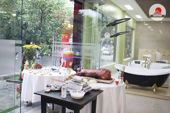 Mâm cúng đầy đủ cầu chúc cho tương lai phát triển của Showroom